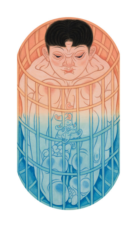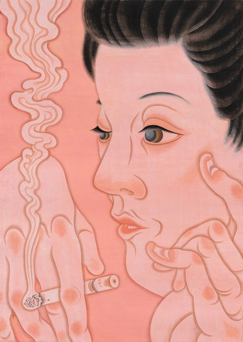 Ink and colors on kumohada linen paper, mineral pigments, gold foil, silver foil, colored silver foil, sulphide silver leaves
